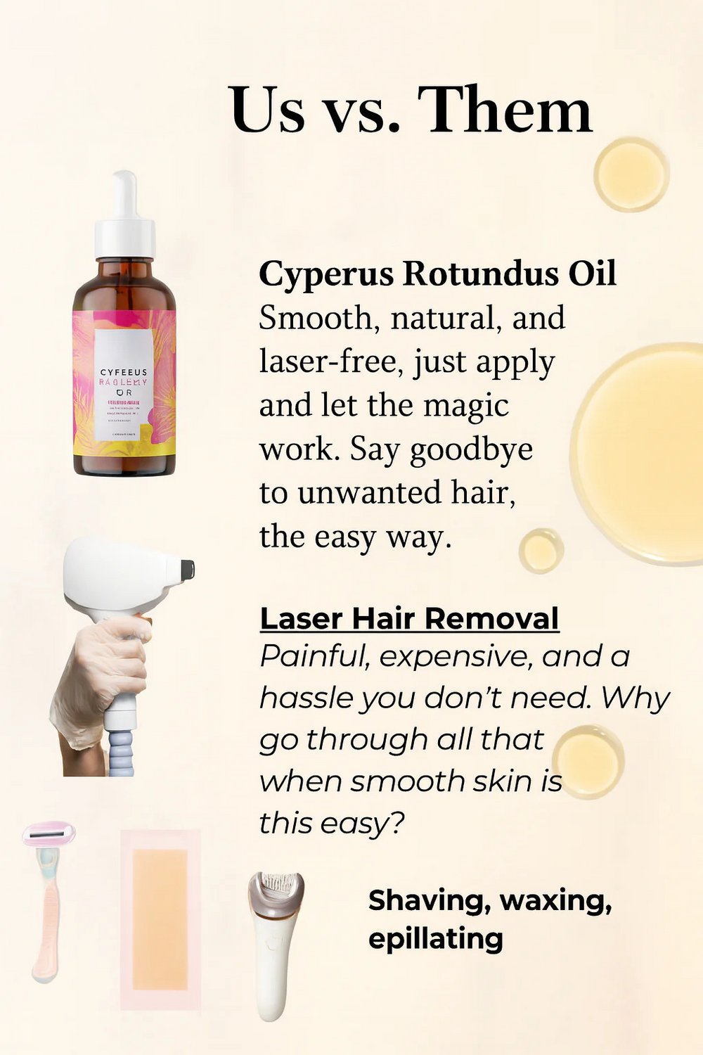 Unlike others, our oil works gently at the root, naturally slowing regrowth while hydrating skin. Enjoy smooth, irritation-free results with every application.